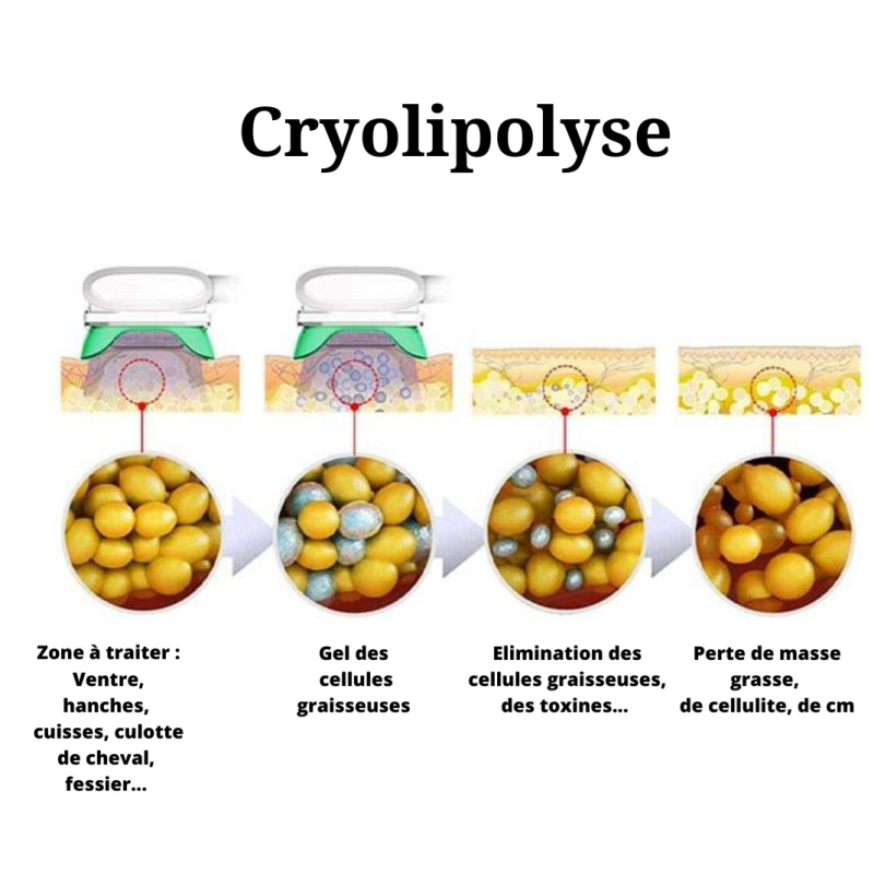 La Cryolipolyse permet la destruction des cellules graisseuses par le froid. Complètement indolore et rapide, cette technique d’amincissement par le froid est tout à fait indiquée pour les rondeurs modérées et localisées (poignées d’amour, culotte de cheval, ventre, cuisses…)